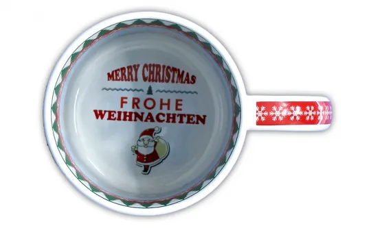 Kaffeebecher mit Henkel in Form eines Nicolaus / Weihnachtsmann zum individuellen gestalten und bedrucken. Unsere günstiger Kaffeebecher mit Nicolaus / Weihnachtsmann Henkel ist ideal zum verschenken für die Winterzeit. Bedruckter Sie den Kaffeebecher mit lustigen Motiven oder persönlichen Fotos als ausgefallene Geschenkidee zum Weihnachtsmarkt