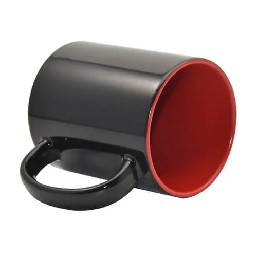 Schwarze Magic Mug Zaubertasse mit roter Innenbeschichtung zm selber gestalten. Bei der Magic-Mug wird der brillante Aufdruck erst sichtbar, wenn Sie ein Heißgetränk einfüllen.