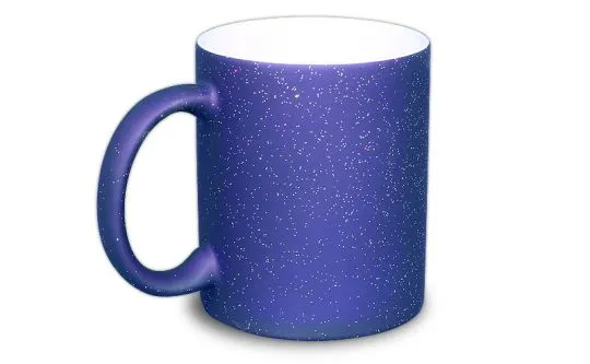 Matt blaue Zauber-Tasse Magic Mug mit Glitter-Effekt mit eigenem Foto bedrucken. Bei der Zauber-Tasse Magic-Mug wird der brillante Aufdruck erst klar sichtbar, wenn Sie ein Heißgetränk einfüllen.