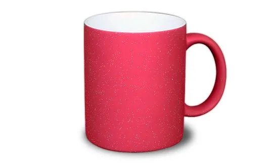 Matt rote Zauber-Tasse Magic Mug mit Glitter-Effekt mit eigenem Foto bedrucken.Bei der Zauber-Tasse Magic-Mug wird der brillante Aufdruck erst klar sichtbar, wenn Sie ein Heißgetränk einfüllen.